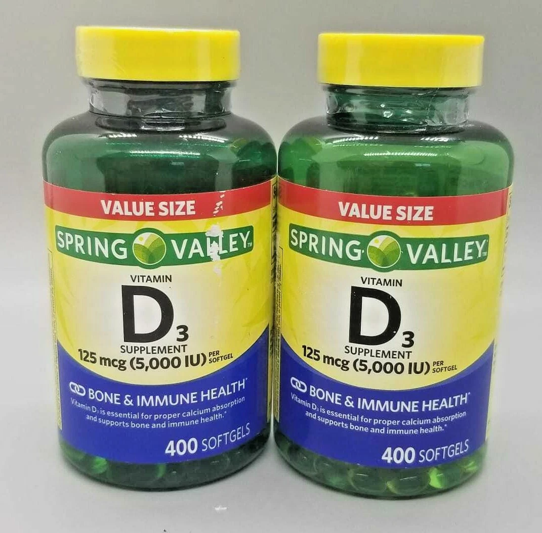 Spring Valley Vitamin D3 Supplement 125mcg 5000 Iu 400 Softgels 2pk Exp 11 24 Ebay